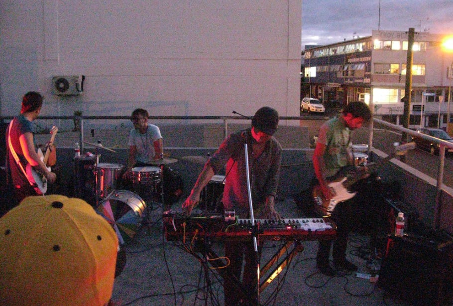 Up on that Newtown rooftop, Kody descended from the wire mesh fence unscathed. Concerned but undeterred, Youens ploughed ahead. A few months after MusicHype’s soft-launch concert, she decided it was time to unveil her company with a bigger flourish. To really kick off the business and score the widespread coverage they desired, she and Ruban planned something even grander, an event that would get everyone talking: a full, free concert by The Mint Chicks.