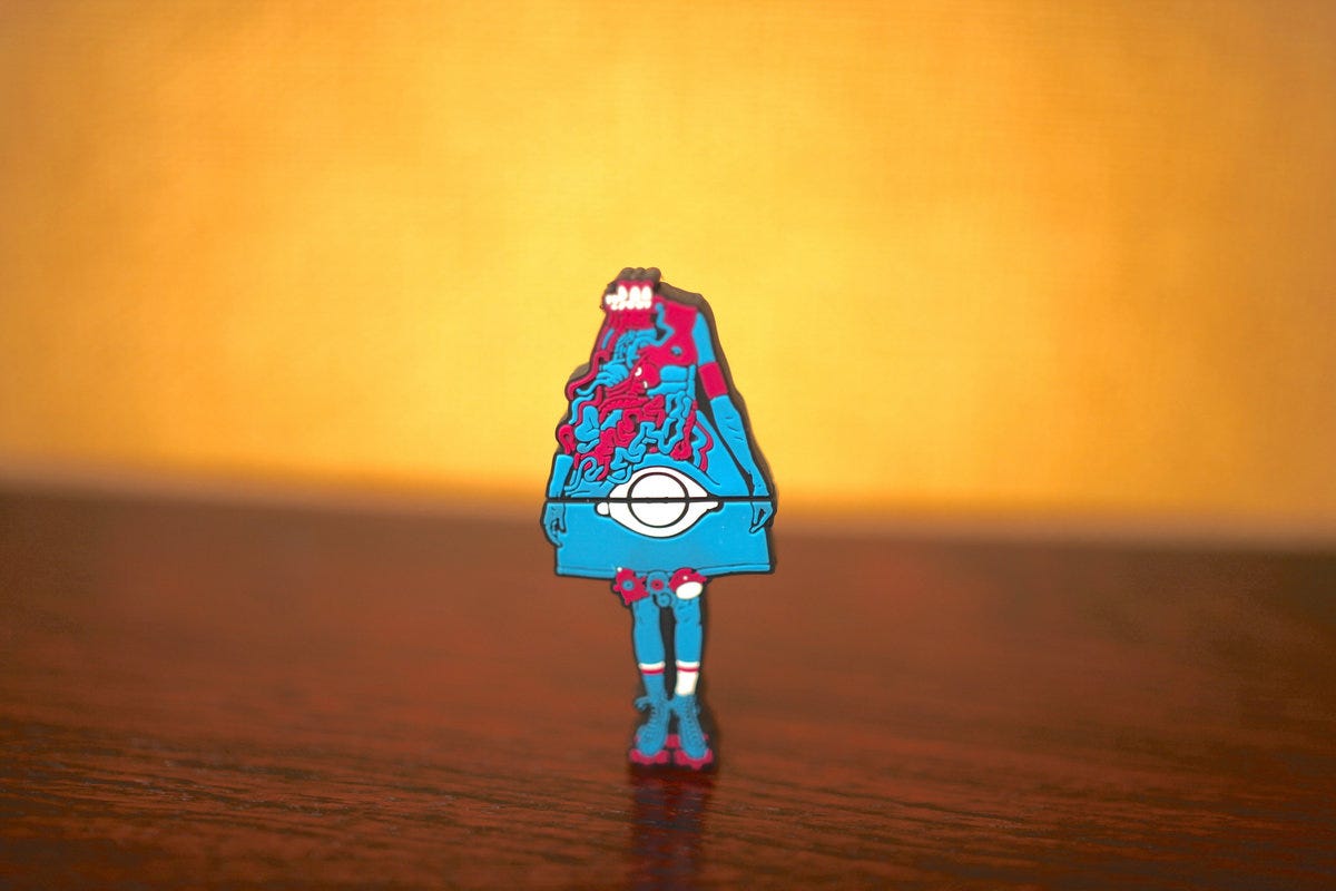 One day, during these sessions, Ruban told Youens he wanted to do something no other artist had done before. “Ruban had custom-designed this USB stick,” she says. “We had never heard of anyone doing that.” Shaped like an alien figure in a dress, the small 1GB drive contained the new EP from The Mint Chicks, a four-song collection that included the electric single, ‘Bad Buzz’. Youens was impressed. “Ruban was like, ‘I’ve got some art we could probably use.’ I was like, ‘Yeah, OK.’ He showed it to me and I was like, ‘This is amazing!’” They printed 1000 copies then asked fans to submit music videos. One still exists on YouTube.
