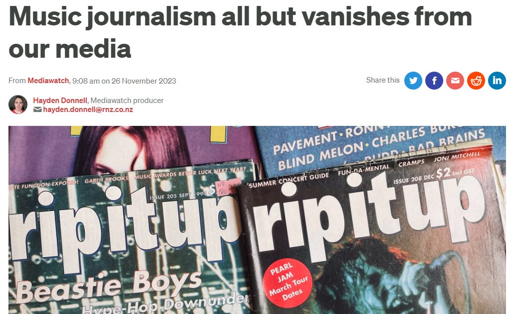 We won't find in on 'mainstream' media channels, for now at least. Substack and the like will play a critical role in fixing music journalism. Writers like yourself will keep fighting the good fight, and eventually the 'mainstream' outlets will look up and start using it for their channels (like we see with Dylan Cleaver, and Bernard Hickey), and it'll breathe new life into the whole scene.