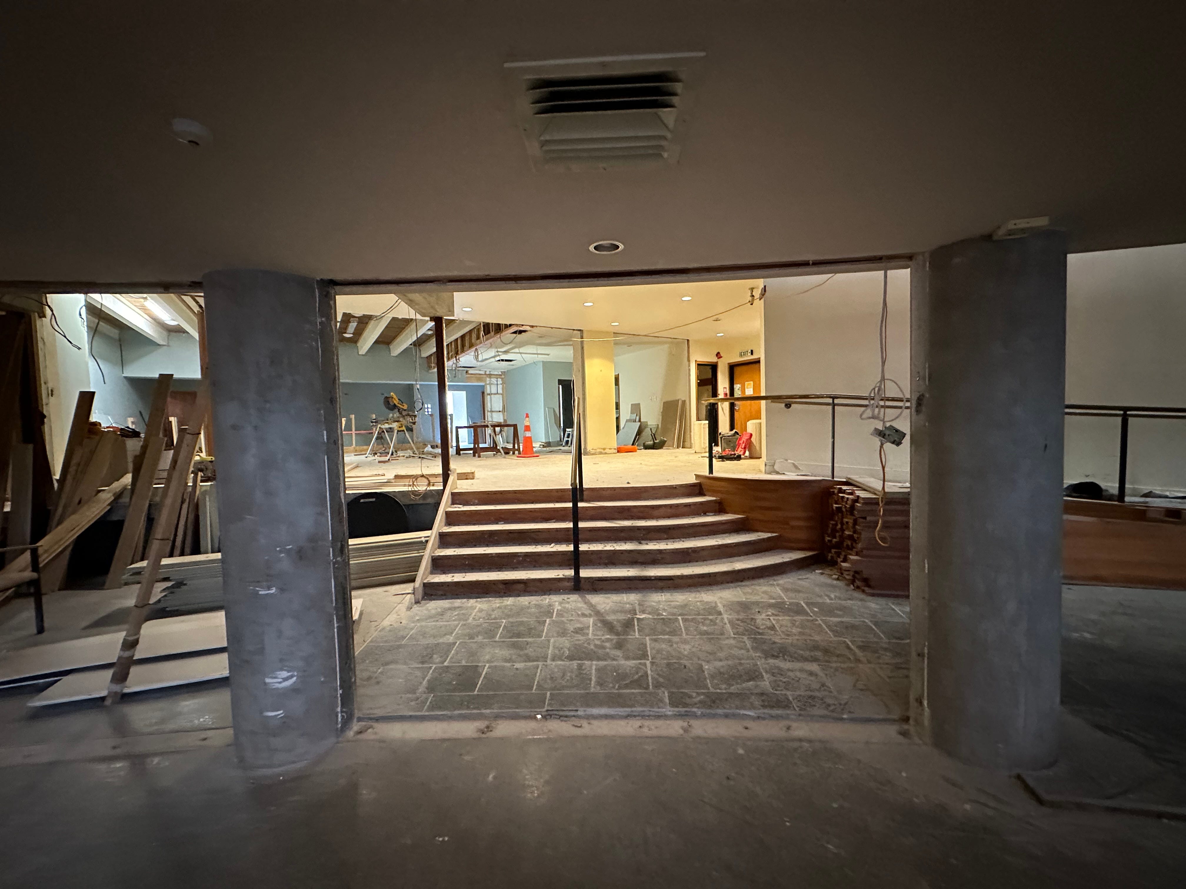 Meow Nui will be different. It’s going to be a full-time, dedicated music venue with excellent views of whoever’s playing no matter where you’re standing. To prove it, Jones takes me upstairs. The brown seats that used to be there have been ripped out, leaving steep concrete steps and wooden railings looking down over the venue.
