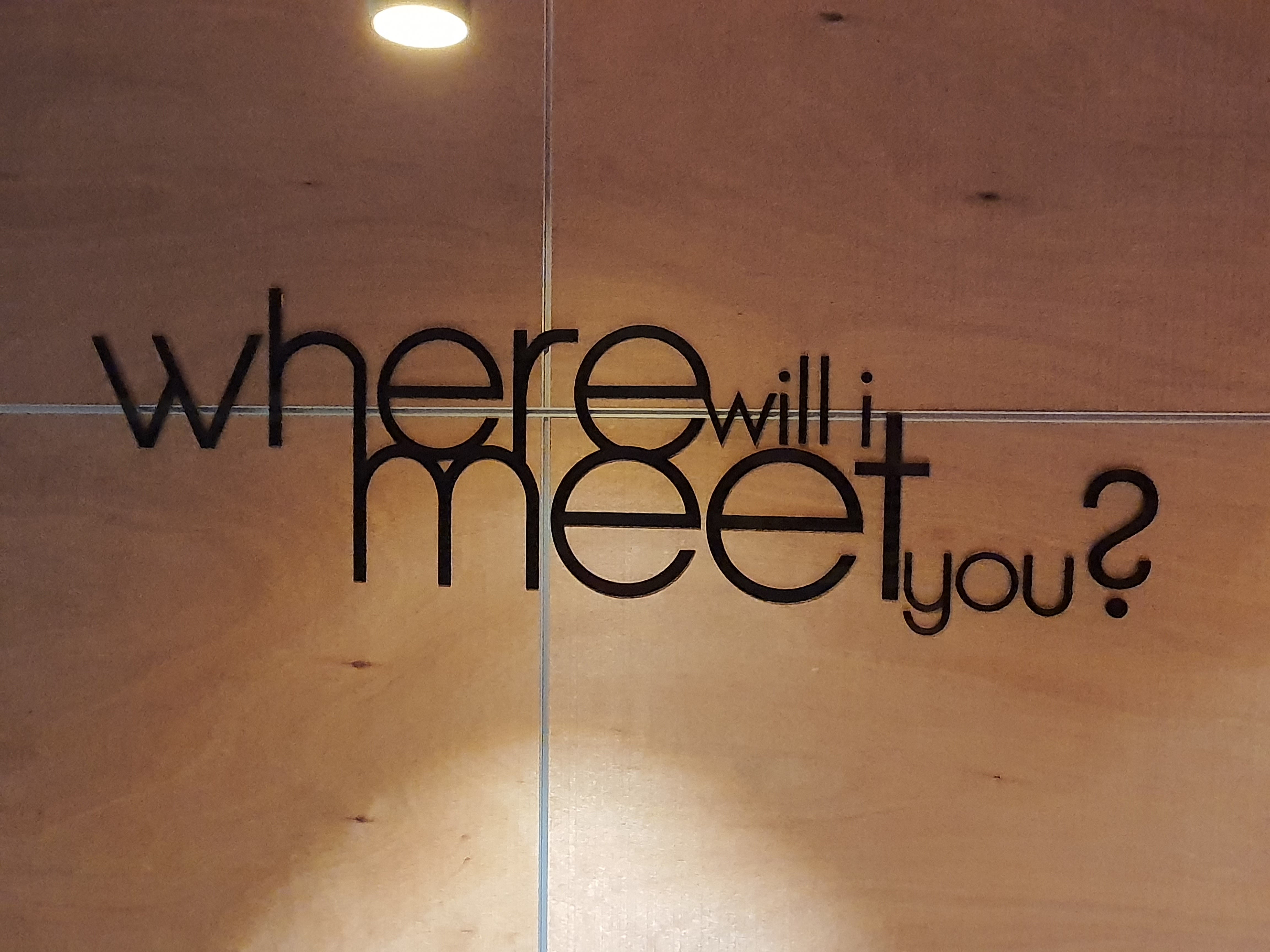 Let’s start here, at the front entrance. If you stop and stand on these steps for long enough, your gaze will turn away from the cavernous concrete bunker beneath you and upwards towards an electronic sign.